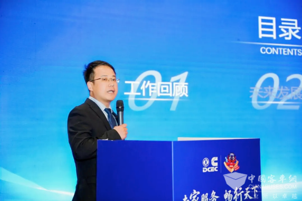 渠道管理部经理雒志学作《服务工作报告》,全面回顾2025年服务工作。通过强化技术标准建设、开展精准培训、部署专用工具、推进预见性维修等一系列举措,服务指标持续优化,客户满意度显著提升。2026年,服务将围绕“聚焦客户、赋能渠道、创新服务”展开,重点深化车队客户开拓、非道路CS4业务、再制造保外业务,并全力构建成熟的海外业务体系,冲刺8.5亿备件销售目标。