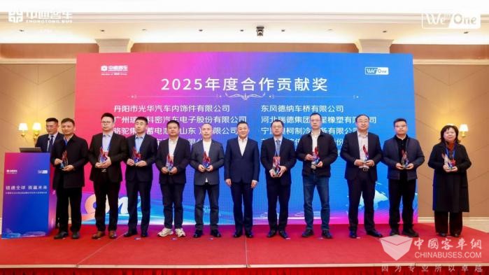 在大会上,东风德纳凭借过去一年里在产品质量、供应保障、技术创新以及协同合作等多方面的卓越表现,从众多供应商中脱颖而出,被中通客车授予“合作贡献奖”。此次再度获奖,不仅是双方合作的里程碑,更预示着中国客车产业链将以更强大的合力,向全球价值链高端迈进。