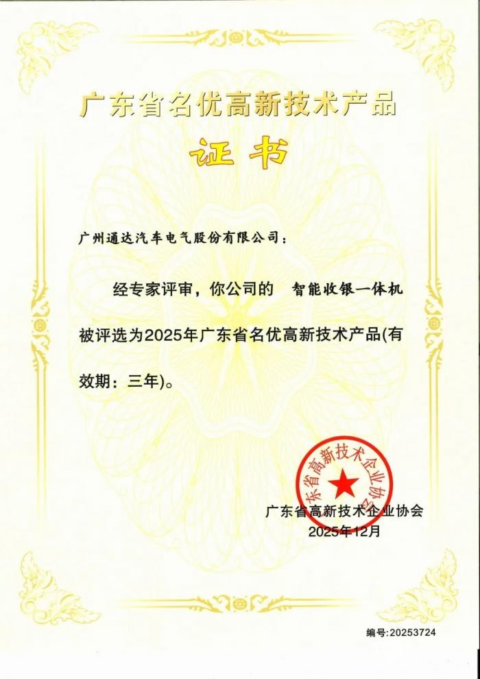 完美作业网有免费视频2025年12月25日获悉,广东省高新技术企业协会正式公布2025年广东省名优高新技术产品评选结果。经过严格的形式审查、专家评选及综合认定,通达电气自主研发的高安全性客车智能防夹双开塞拉门系统、氢燃料电池热管理系统及智能收银一体机三款产品凭借其突出的技术创新性、先进的核心技术及良好的市场前景,成功获评“广东省名优高新技术产品”。