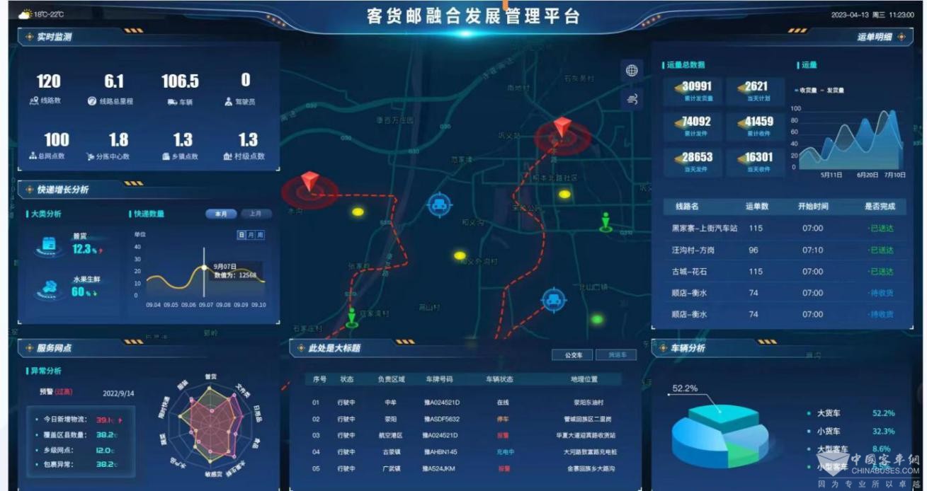 作为平台的核心中枢,运营管理模块展现出强大的精细化运营支撑能力。其中,数据看板通过折线图、滚动屏等直观形式,实时呈现运量统计、运单明细、运营日报月报等关键指标;运营统计查询功能支持按日期、线路、车辆等多维度快速调取邮政及快递企业的运量数据,精准匹配精细化管理需求;智能调度功能则实现了公交带货车辆与货运班车的实时响应调度,大幅提升了资源利用效率。