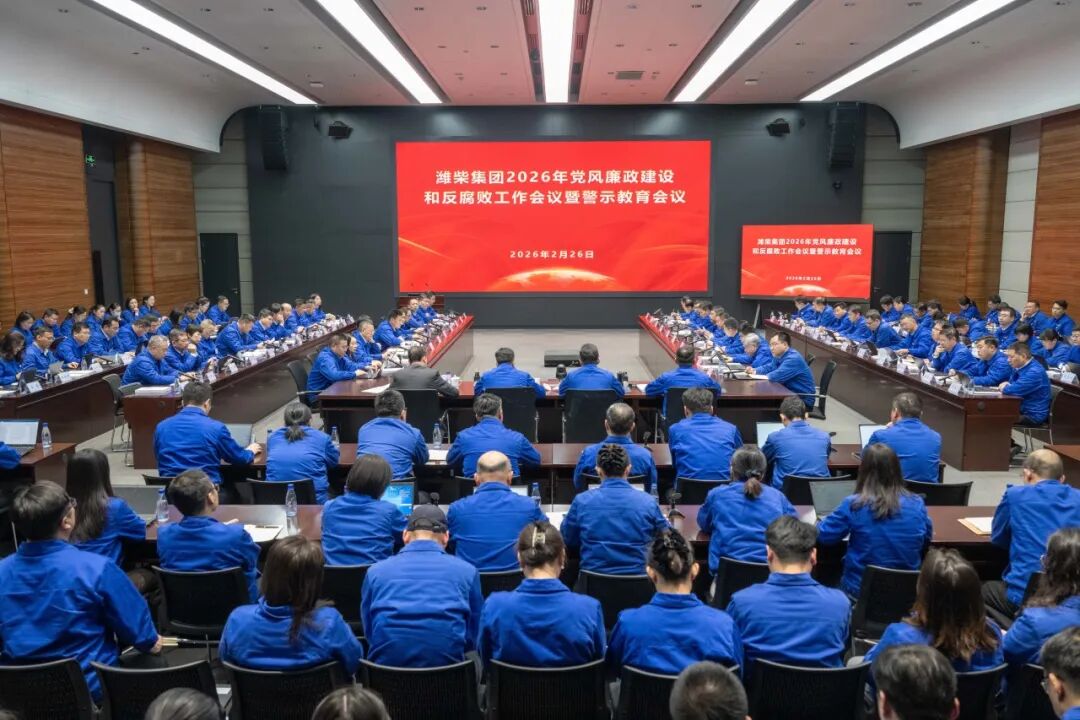 2026年2月26日下午,潍柴集团召开2026年党风廉政建设和反腐败工作会议暨警示教育会议,深入贯彻落实习近平总书记在二十届中央纪委五次全会上的重要讲话精神,以及二十届中央纪委五次全会、十二届省纪委五次全会精神,传达学习山东重工集团2026年党风廉政建设和反腐败工作会议暨警示教育会议精神,总结集团2025年党风廉政建设和反腐败工作,部署2026年重点任务。省纪委监委驻山东重工集团有关同志到会指导。