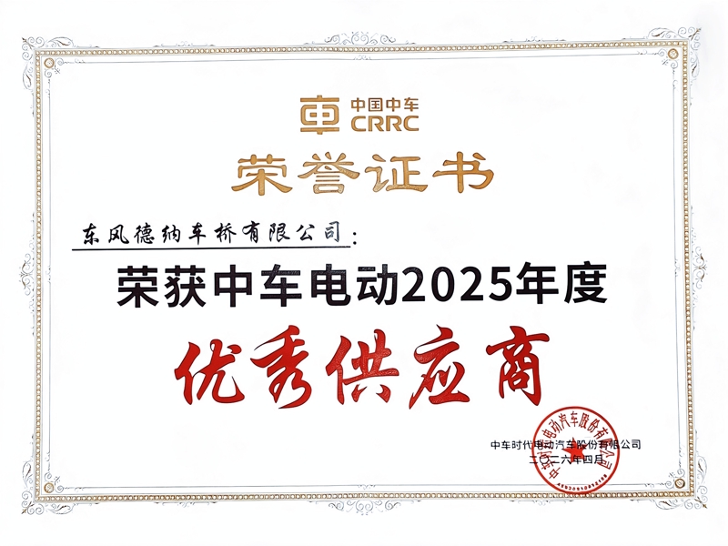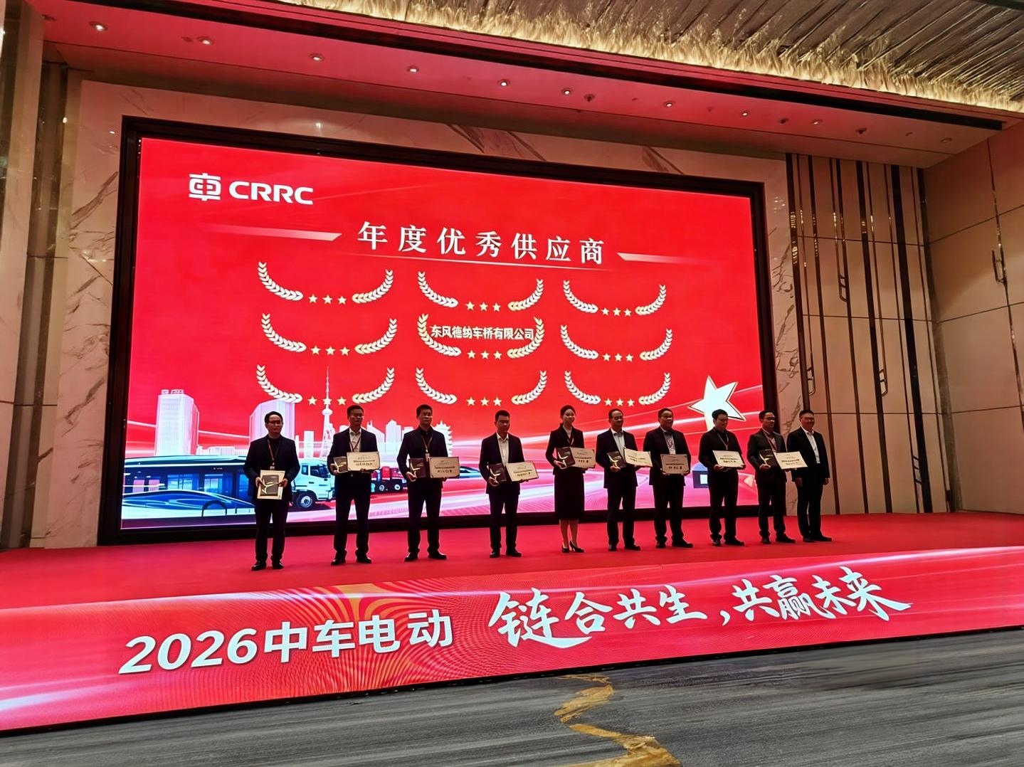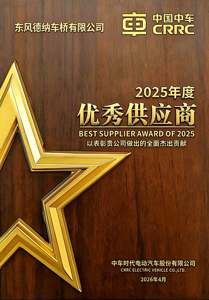 2026年4月2日,株洲——在株洲举行的中车时代电动汽车股份有限公司2026年度供应商大会上,东风德纳车桥再次荣获“优秀供应商”奖项。这是该公司连续第十年获此表彰。