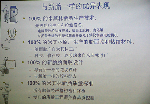 (2)100% 的米其林原厂生产的胎面胶和粘结材料;