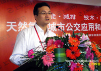 城市车辆专家委员会主任李世豪在致词中讲到:发展天然气汽车有利于改善我国车用能源能源结构,我国汽车保有量为2005:3800万辆,2010年:5800万辆,2020年11000万辆,汽车用油消费石油1.1亿吨,占石油消费总量的40%。天然气汽车的使用,将有效地改善这一能源结构现状,达到国家节能减排降耗的目的。