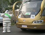 在卡客车上,滚动阻力的存在会使轮胎造成的燃油消耗量约占总量的1/3,轮胎成本则占到总体的6%,燃油成本则高达40%。以一个100辆客车车队为例: 装配米其林绿色节能轮胎,将比使用普通轮胎至少节省燃油147,600升, 节省费用为 915,000 元,相当于近300条轮胎免费使用 (以绿色节能轮胎30万公里寿命里程计)。 |