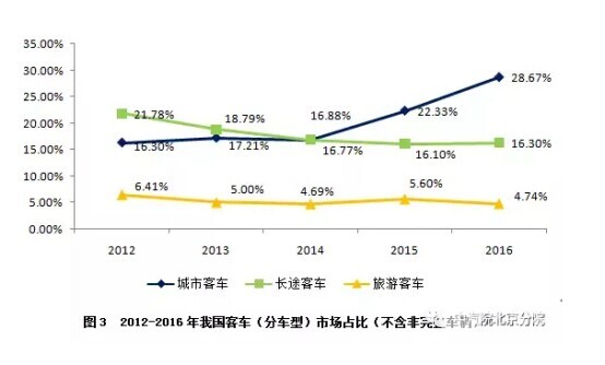 从近三年新能源客车销量数据来看,新能源客车市场比重持续增长。2016年,新能源客车占客车市场比重达23.86%,未来预计该比重仍将继续稳步提升。