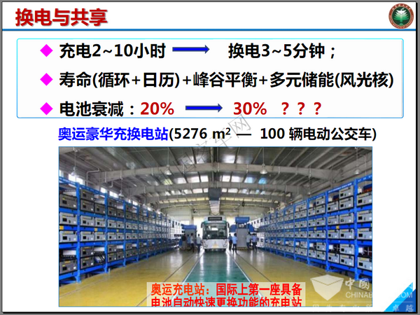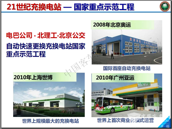1998年开始,我国开始推行各种各样的电动车,当时要做在鸟巢或水立方的中心区做一个18平方公里的奥运会期间零排放区,尝试过很多方案,但还是以机械半自动更换为主。