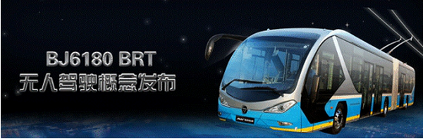 2016年1月11日,在福田汽车集团·福田戴姆勒汽车2016商务年会期间,,福田欧辉现场升级了智蓝新能源一体化解决方案,同期上市发布了BJ6180系列在线充电纯电动城市客车——BJ6180无人驾驶BRT概念车。该产品结合了BRT独特的公交系统,通过雷达、车道引导、激光定位器、全球定位系统、红外照相机、立体图像、车轮编码器等先进技术。