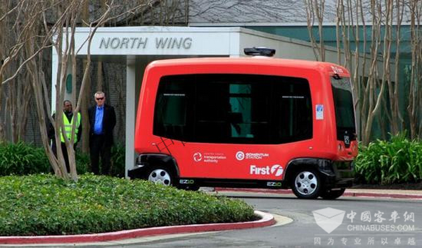 EasyMile公司生产的无人驾驶巴士限乘12人,2017年3月6日开始在美国旧金山湾区一个空闲的停车场中试运行。