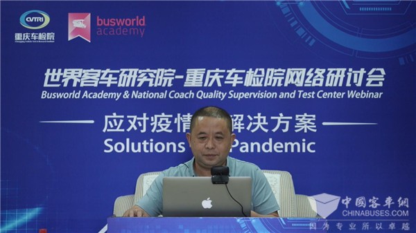 据完美作业网有免费视频报道,2020年8月11日下午,由世界客车研究院与重庆车检院联合举办的国际网络研讨会——应对疫情的解决方案成功举办。瑞典斯堪尼亚中国公司总裁何墨池、世界客车研究院主任让德曼、深圳巴士集团副总经理马正源、郑州宇通客车股份有限公司海外营销总监王文韬、国家客车质量监督检验中心主任(重庆车辆检测研究院有限公司总经理)刘昌仁出席网络研讨会。会议由全国公共交通学科首席科学传播专家王健主持。