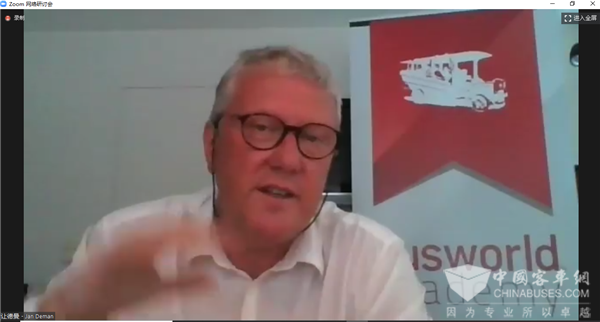 世界客车研究院主任让德曼在演讲中指出,客车行业应对疫情需要客车生产商、政府部门、乘客等各方通力合作,群策群力,他认为,疫情可能带来经济衰退甚至是气候变化,对客车行业带来的影响是深远的,需要各方加强合作。