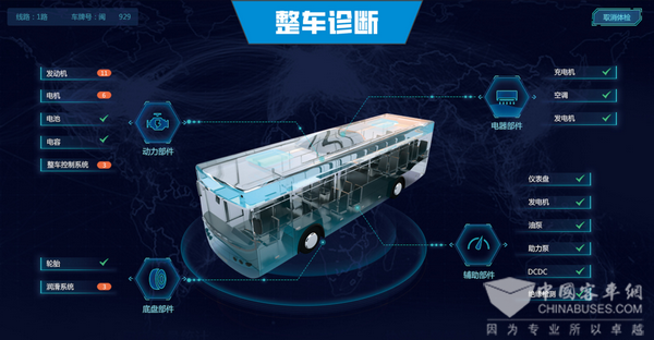 方案具备在线诊断功能,集成电机、电池、电控、DCDC、空调、胎压、底盘等在线故障诊断和报警,能够及时发现车辆故障。系统搭配汉纳森车联网大数据平台,还可支持远程车辆诊断功能,一键下发检测指令,知悉每辆车健康状态。