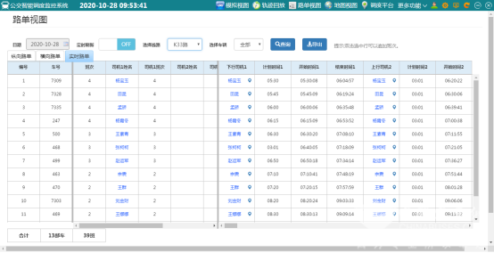 实时掌握班次运营情况,包括早高峰、平峰和晚高峰班次的统计。另外分别对发车准点率、大间隔和串车指标进行实时核算并展示,异常情况可以及时提醒和车辆调度,便于对运营车辆的全面掌控,通过指标并能控制车辆均衡运行。