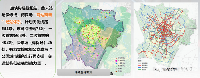 按照市委市政府“着力优化交通结构”“轨道引领、公交优先”“构建轨道+公交+慢行绿色交通体系”等相关要求,会同相关市级部门编制《成都市中心城区公交发展及场站规划(2023—2035)》,充分研判线网布局、场站建设、充电配套和智慧公交等四大挑战,确立“按需定线、以站固网、绿色转型、数字支撑”规划总体思路,紧扣“人、车、线、站、场”等要素配置,推动形成功能明确、层次清晰的线网层级,加快构建“两站两场”场站体系,有力支撑成都公交成为“公园城市绿色出行强支撑,交通结构低碳转型动力源”。
