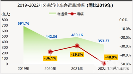 百年公交作为传统型老牌企业,各类遗留问题较多,管理模式粗放,随着私家车、网约车和共享电单车等多元化出行方式影响,导致公交客流锐减,票款收入呈断崖式下降(根据交通运输行业发展统计公报显示,2019年公共汽电车完成客运量691.76亿人。2020年公共汽电车客运量442.36亿人,下降36.1%。2021年公共汽电车客运量489.16亿人,增长10.6%。2022年公共汽电车客运量353.37亿人,下降27.8%。与2019年客运量数据对比,2020年降幅36%,2021年降幅29%,2022年降幅49%。),加之通货膨胀等因素,公交运营成本逐年提高,企业运营困难重重。