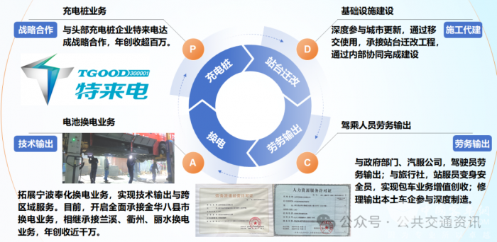 a. 换电市场:以金华为例,辐射金华大市范围内公交换电业务。2025年中标兰溪、丽水、衢州换电业务。b. 站台板块:承接BRT、常规公交站台迁建,2025年承接站台莘贩、菜鸟等4个BRT站台,创收超200万。c. 弱电项目板块:承接华东联运新城换电站建设。d. 充电桩板块:与特来电等头部企业合作,承接充电桩新装、巡检、维保工作,年创收超百万。