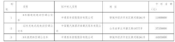 中通、重汽豪沃中标潍坊市公共交通总公司100台新能源公交车采购项目