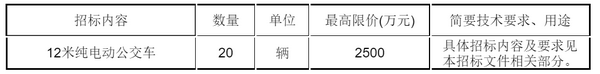 温州市交通运输集团有限公司20辆12米纯电动公交车采购,招标内容及要求如下: