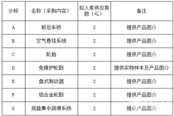 本次新购车辆配套件供应商备选库共分五个标段,Ⅰ标段采购内容如下: