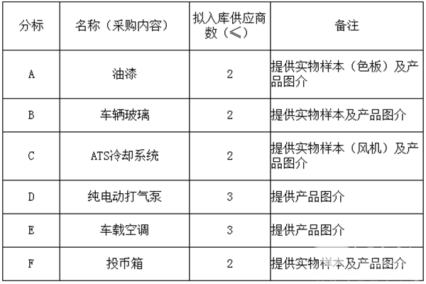 1.4新购车辆配套件供应商备选库入库每家供应商最多成交五个标段中的任意四个分标。