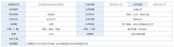 无锡新区公交公司2019年第一批次新能源公交车采购招标公告