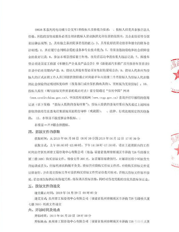 - 威海市昆嵛公共交通运输有限公司购置20辆电动公交车公开招标