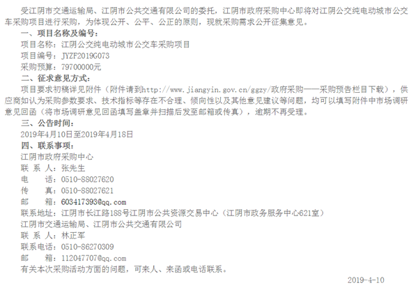 - 兴城市购置新能源公交车项目-8米纯电动公交车中标候选人公示