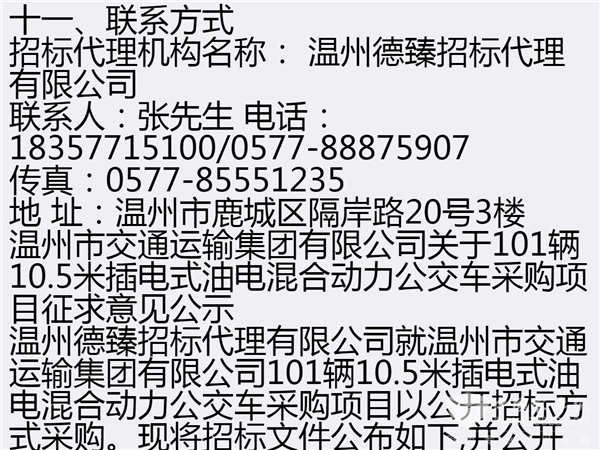 - 兴城市11米 客运版纯电动公交车中标候选人公示