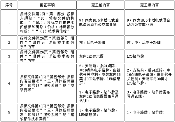 温州市交通运输集团有限公司关于101辆10.5米插电式油电混合动力公交车采购项目的更正公告