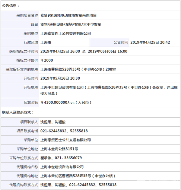- 兴城市11米 客运版纯电动公交车中标候选人公示