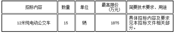 温州市交通运输集团有限公司15辆12米纯电动公交车采购,招标内容及要求如下: