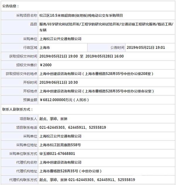 - 兴城市购置新能源公交车项目-8米纯电动公交车中标候选人公示