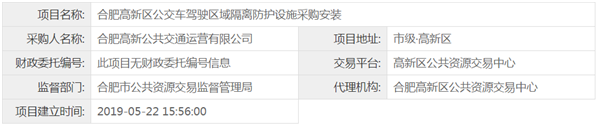 合肥高新区公交车驾驶区域隔离防护设施采购安装项目竞争性谈判公告