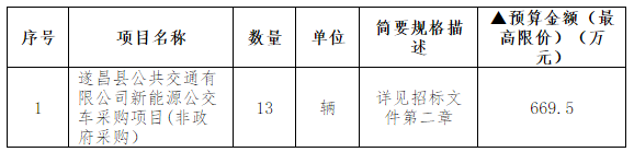 根据《中华人民共和国政府采购法》、《中华人民共和国政府采购法实施条例》等有关规定遂昌县公共交通有限公司,就其新能源公交车采购项目(非政府采购)进行公开招标采购,欢迎国内符合条件的潜在投标人参加本项目投标。