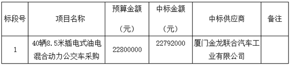 浙江温州交运集团40辆8.5米插电式油电混合动力公交车采购项目结果公示