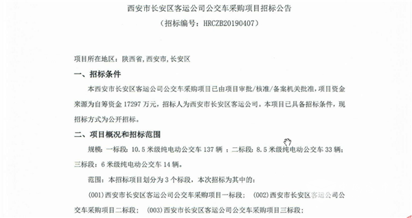 - 兴城市购置新能源公交车项目-8米纯电动公交车中标候选人公示