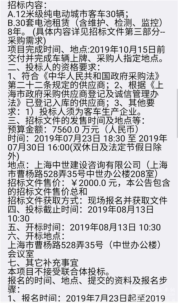 - 兴城市11米 客运版纯电动公交车中标候选人公示