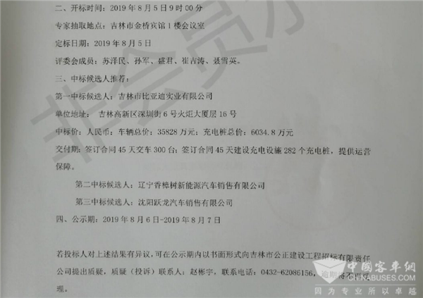 - 兴城市购置新能源公交车项目-8米纯电动公交车中标候选人公示