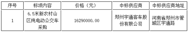 浙江省乐清市公交客运有限公司8.5米纯电动公交车采购中标结果公告