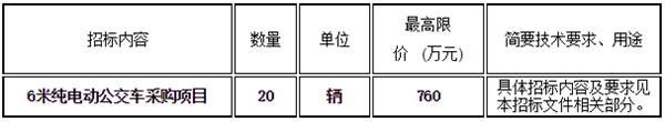温州交运集团汽车服务有限公司6米纯电动公交车采购,招标内容及要求如下: