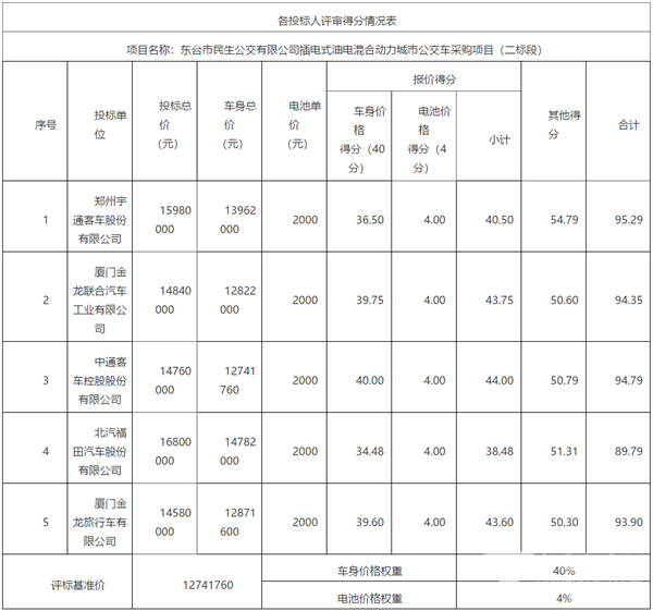江苏宏建工程建设咨询有限公司受东台市民生公交有限公司委托,就东台市民生公交有限公司插电式油电混合动力城市公交车采购项目(二标段)进行公开招标采购,按规定程序进行了开标、评标、定标,现就本次招标的中标结果公布如下: