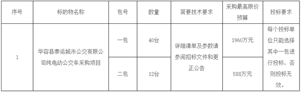 湖南省华容县泰运城市公交公司纯电动公交车采购项目招标变更公告
