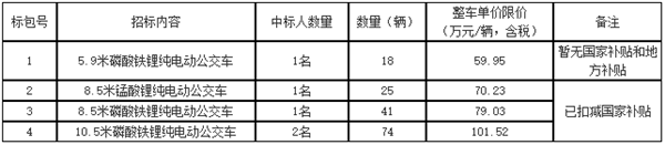 (1)整车单价限价为扣减国家政府对新能源汽车的财政购车补贴后(5.9米磷酸铁锂纯电动公交车除外)、包含车辆运费等相关费用的整车总价的最高限价;
