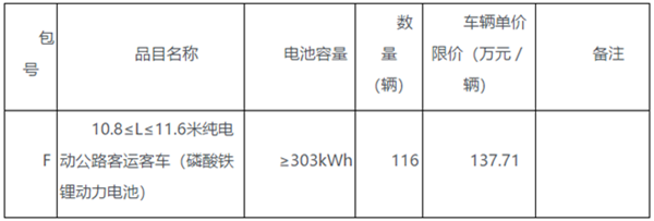 注:(1)上述预算单价为招标人自付车辆单价限价,不包含中央政府补贴。中标人需协助招标人申领地方对新能源汽车的财政补贴,其补贴金额归招标人所有。
