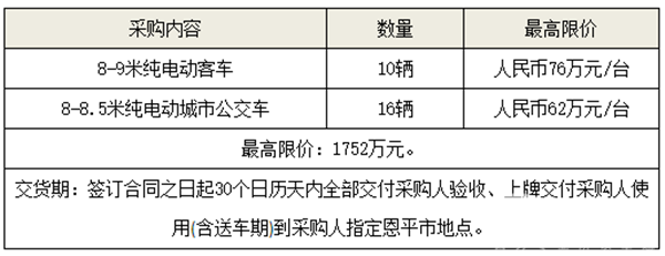 广东省恩平市恒顺公共汽车运输公司纯电动客车、电动城市公交车招标公告
