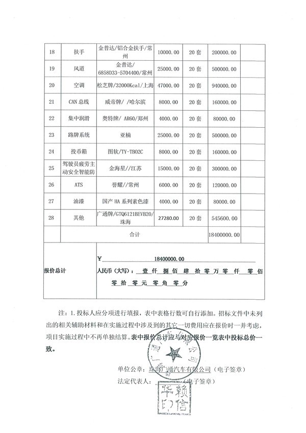 (一)中标人名称:珠海广通汽车有限公司