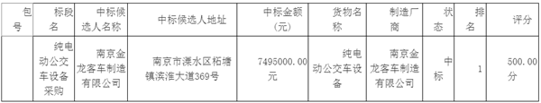 - 南京东山公交客运有限公司80辆纯电动公交车采购项目中标结果公告