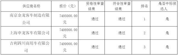 - 兴城市11米 客运版纯电动公交车中标候选人公示