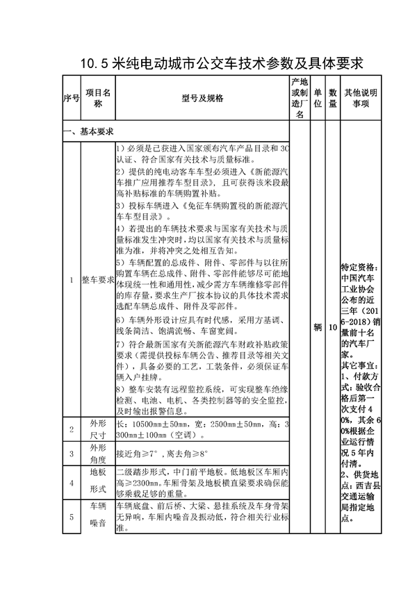 1.1项目名称:西吉县纯电动城市公交车采购项目