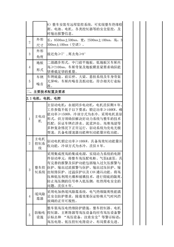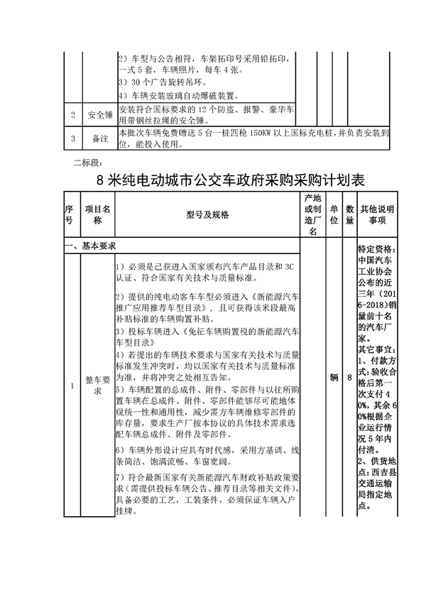 1.2标段划分:共划分2个标段; Ⅰ标段为10.5米纯电动公交车,Ⅱ标段为8.5米纯电动公交车。